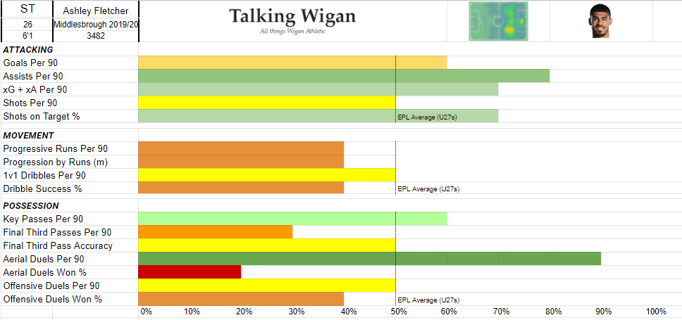 Fletcher’s aerial duels won % of 24.64% is worryingly low for someone that is coming in as a Target Man in our system. A criticism of Josh Magennis from Latics fans is the fact he doesn’t win enough in the air, so the fact he wins nearly twice as much as Fletcher in the air doesn’t fill me with much confidence.