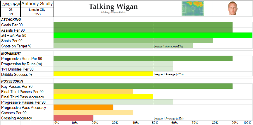 23 year old forward Anthony Scully has arrived at the DW Stadium after completing an undisclosed permanent deal from League 1 side Lincoln City. Off the back of a successful time last season where he netted 15 goals and 7 assists, Scully adds pace and trickery to the Latics forward line and will be looking to replicate that form in the division above.