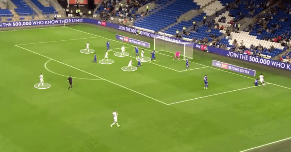 Luton love to get the ball wide and create overloads with the aim of dragging the opposition out of shape. After creating a disjointed defensive unit they load the box which to put it simply causes havoc! Defenders don’t know who to mark and if the delivery is accurate, which it usually is with Luton’s wide men, they get a lot of chances. We could do with having a back 5 to try and minimise the space in the box and prevent any of their forwards getting on the end of the crosses.