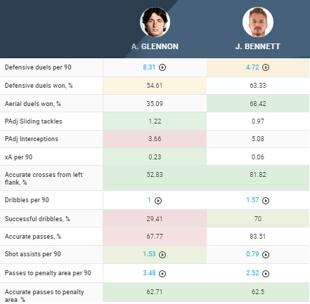 Joe Bennett is the only one I can evaluate from a statistical perspective based on this season as Tom Pearce has barely played recently. With that in mind I’ll show you the latter’s data from last season: