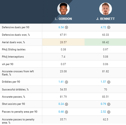Positionally Gordon is very astute as the 7.4 Interceptions suggest. He can be prone to lapses in concentration as I saw first hand in his game at Hillsborough but on the whole I’d be very confident in him as a Championship defender.