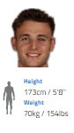 19 Y/O Manchester City and England youth player. Excellent physical attributes, quick and strong and can get up and down the pitch for 90 minutes. Impressive technical ability too, possesses a great switch of play and solid dribbling. Question marks around his decision making at both ends of the pitch but still growing as a player and person.