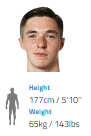 At 6’2″ he’d add the height we might lose by replacing Naylor in the side and is another left footed option which adds nice balance to the side should Shinnie not play. He’s a powerful runner with a great engine so I have no doubts he’s got the physical game for the Championship. Some technical attributes might need work though.
