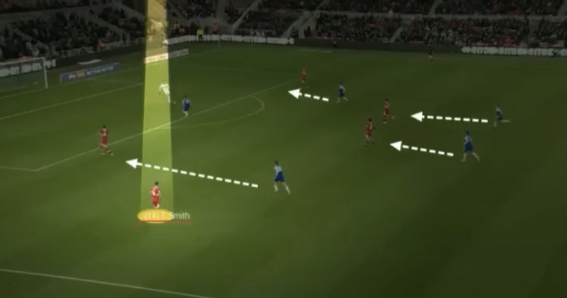 Their front 3 or 4 depending on who plays are all capable of intricate passing and receiving passes on the half turn. We need to make sure our distances between defence and midfield are smaller, be that the defence stepping higher or the attack pressing less high, and that everyone is absolutely clear what the trigger is. Otherwise, it’ll be DEpressing, not pressing…