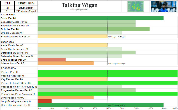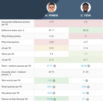 Here are his numbers from the first half of the season in the Czech republic compared to Max Power’s numbers from this season of Championship football. Its not a completely fair comparison to make but it at least shows the general level at which Tiehi competes.