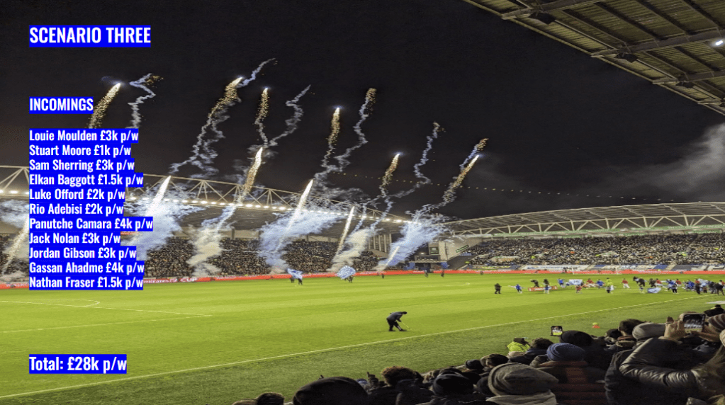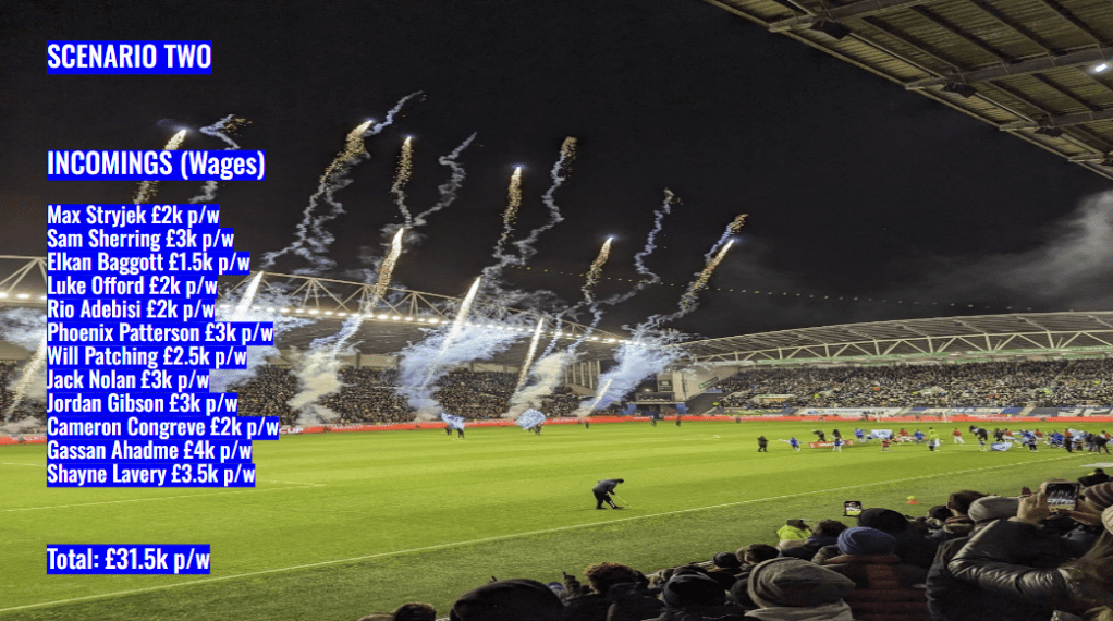 The profiles we are missing are all filled, and from a business perspective it would be brilliant as we make a huge profit and bring in at least ten players who could very easily be sold on for profit in the future. There’s also no real reliance on loanees which puts us in a more secure position for years to come.